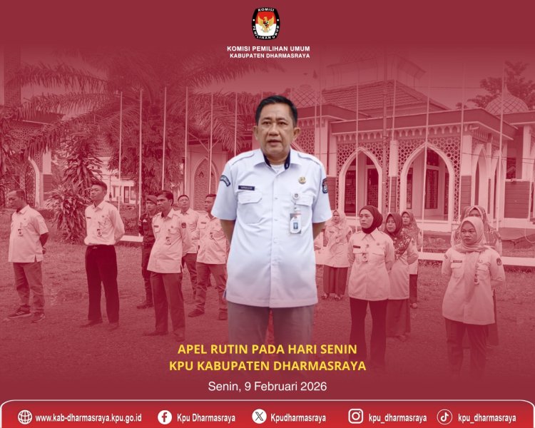 Pulau Punjung, kab-dharmasraya.kpu.go.id ,- KPU Kabupaten Dharmasraya melaksanakan Apel Pagi pada Senin, 9 Februari 2026. Apel dipimpin oleh Sekretaris KPU Kabupaten Dharmasraya Amrullah, dan diikuti seluruh jajaran sekretariat. Dalam arahannya, Amrullah menekankan pentingnya para pegawai di lingkungan KPU Kabupaten Dharmasraya khususnya Pegawai Pemerintah dengan Perjanjian Kerja (PPPK) untuk membaca, memahami, dan mematuhi ketentuan yang tercantum dalam Keputusan Sekretaris Jenderal KPU RI Nomor 1312 Tahun 2023 tentang Pedoman Teknis Pelaksanaan Penegakan Disiplin Bagi Pegawai Pemerintah dengan Perjanjian Kerja di Sekretariat Jenderal Komisi Pemilihan Umum, Sekretariat Komisi Pemilihan Umum Provinsi, dan Sekretariat Komisi Pemilihan Umum Kabupaten/Kota sehingga mampu menjaga kedisiplinan dalam pelaksanaan tugas dan tanggung jawab. Apel pagi ini penting untuk selalu diikuti dan dilaksanakan sebagai bentuk disiplin, tanggungjawab dan koordinasi antar pegawai sebelum pelaksanaan tugas sebagai ASN maupun PPNPN. ....