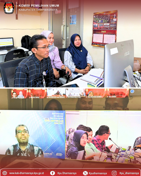 Pulau Punjung, kab-dharmasraya.kpu.go.id ,- Sekretariat KPU Kabupaten Dharmasraya mengikuti kegiatan Knowledge Sharing Implementasi Budaya Kerja BerAKHLAK secara daring (zoom meeting) yang diselenggarakan oleh KPU RI pada hari Kamis (25/9). Kegiatan dibuka secara resmi oleh Kepala Biro Sumber Daya Manusia KPU RI (Yuli Hertaty) dengan menghadirkan narasumber dari Deputi Bidang SDM Kemenpan RB (Karmaji) yang diikuti oleh para pejabat dan staf yang membidangi kepegawaian di Lingkungan Sekretariat Jenderal KPU, KPU Provinsi dan KPU Kabupaten/Kota se-Indonesia. Pembahasan materi dari narasumber mengangkat isu utama tentang penguatan implementasi budaya kerja ASN yang Berorientasi pelayanan, Akuntabel, Kompeten, Harmonis, Loyal, Adaptif, dan Kolaboratif (BerAKHLAK).