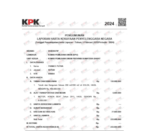 Berikut LHKPN KPU Kabupaten Dharmasraya :