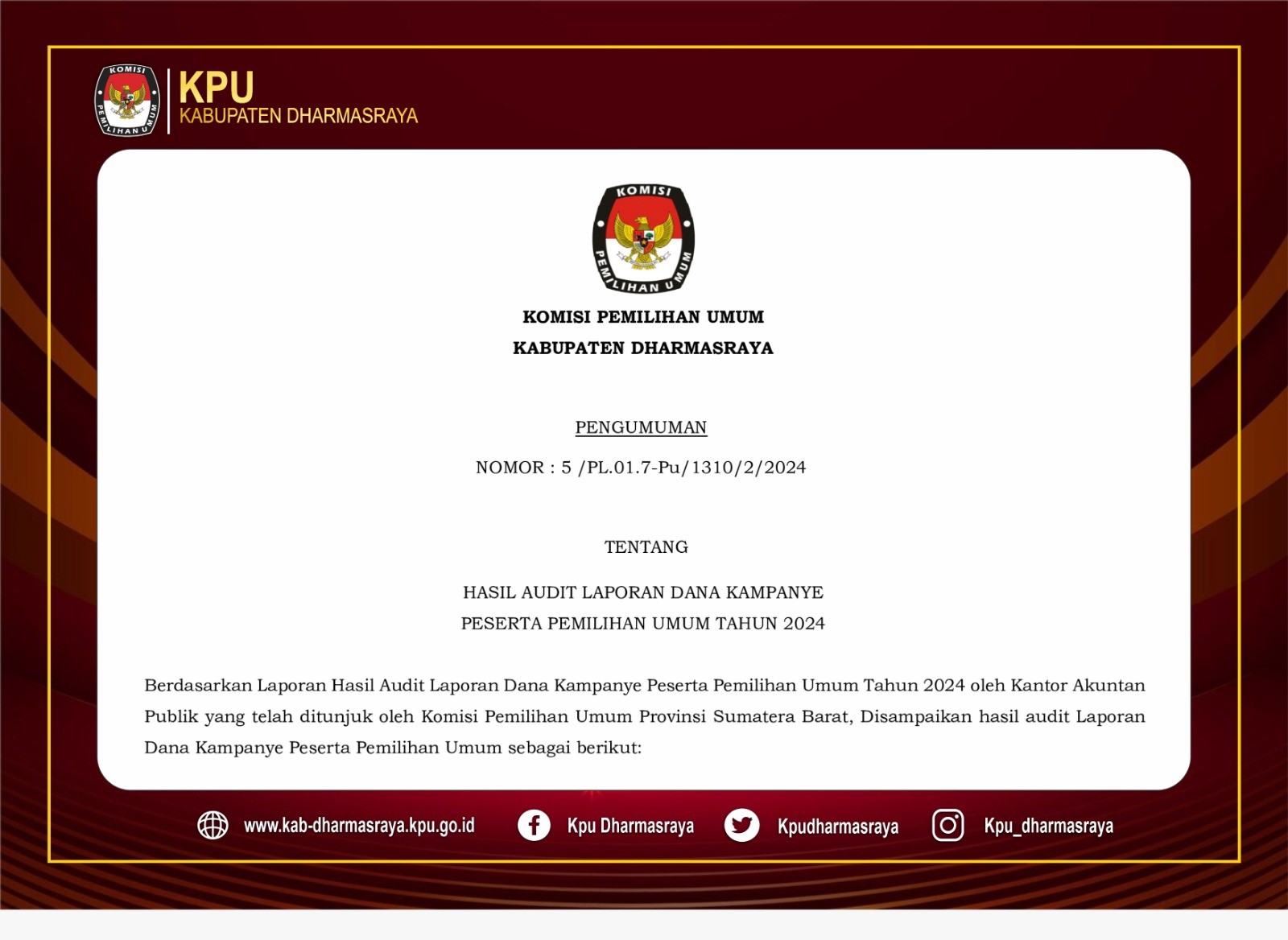 Komisi Pemilihan Umum (KPU) Kabupaten Dharmasraya menggelar Rapat Pleno Terbuka Rekapitulasi Hasil Perolehan Suara Pemilu Tahun 2024, pada tingkat Kabupaten Dharmasraya.