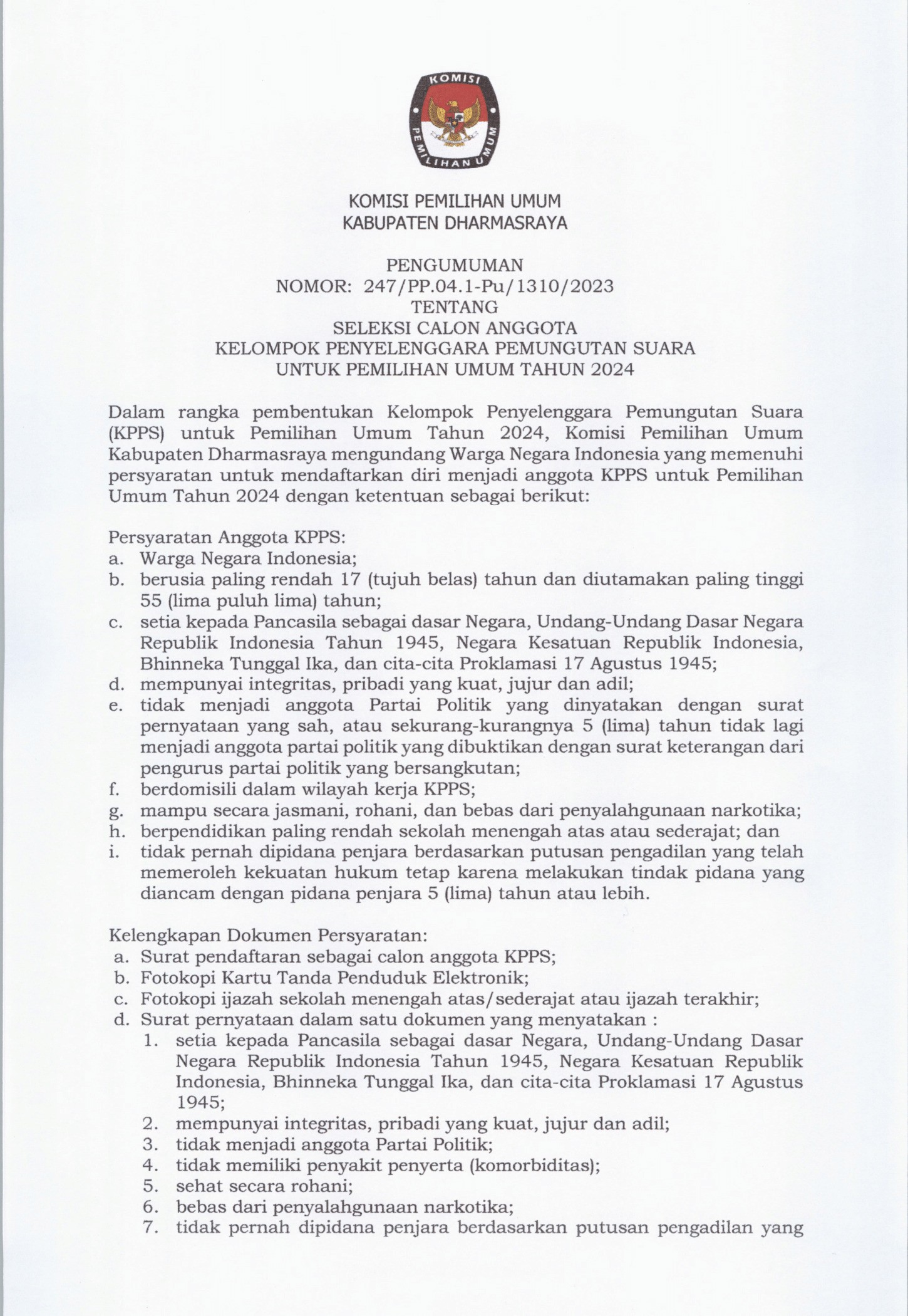 3. Informasi lebih lanjut dapat menghubungi helpdesk pencalonan KPU Kabupaten Dharmasraya